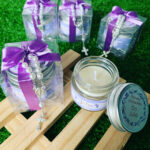 Vela vegetal aromática produzida à mão com cera e óleos vegetais.